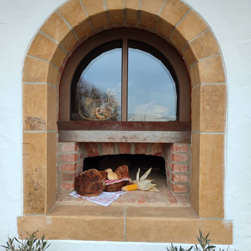 rund um den originalen Holzbackofen wird es zu besonderen Anlässen frisches Holzofenbrot und sonstige Leckereien geben.